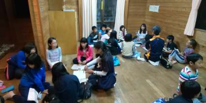 二日目の最後は、ふりかえりです。係ごと、班ごとに2部屋に分かれて話し合いをしました。