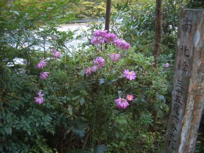 学校の階段わきや池の周りに「キブネギク(シュウメイギク)」が可憐な花を咲かせています。秋が感じられます。
