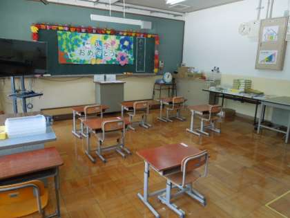 きのうにつづいて がっこうたんけんです。 ここは1ねんせいの みなさんが がくしゅうする きょうしつです。みなさんがくるのを たのしみに まっています。