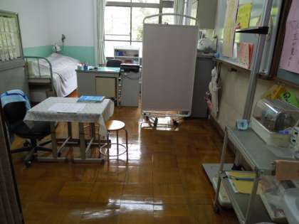 みなさんが けんこうかどうか,おいしゃさんにきていただいて しらべてもらったり せの たかさや からだのおもさ, めの みえぐあいを はかったりします。それから もし がっこうで けがをしたり きぶんが わるくなったりしたときは ここで てあてを していただけます。こころや からだについての そうだんも していただけます。 ほけんしつの よこに みなさんへの めっせえじが はってありますよ。ぜひ みてくださいね。