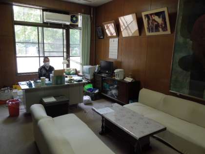 1ねんせいの きょうしつの となりは 「こうちょうしつ」です。こうちょうせんせいが ここで しごとをされます。大きな そふぁあが ありますね。