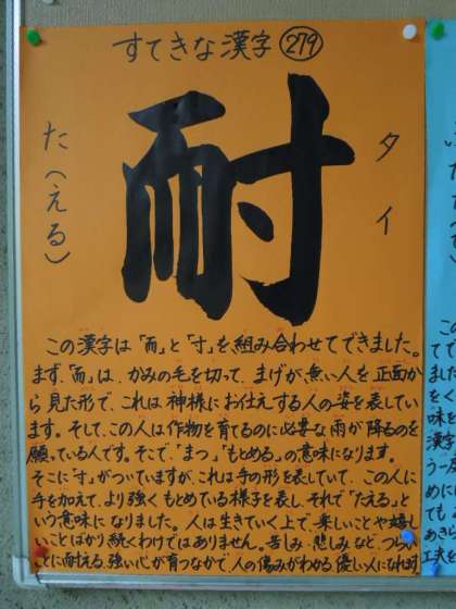 久しぶりに「すてきな漢字」を掲示しました。またご覧ください。