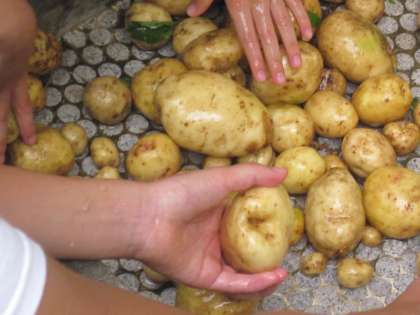 みんなできれいにじゃがいもを洗って,夕食のカレーの材料の準備ができました。
