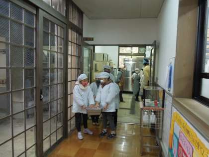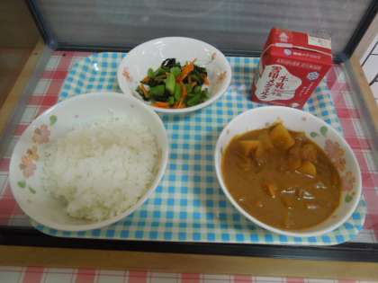 今日の給食は,子どもたちが大好きなカレーです。