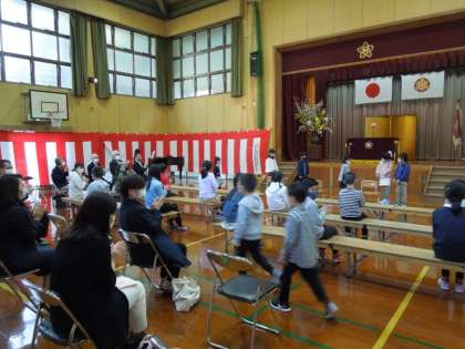新二年生の先導で,新一年生が入場しました。