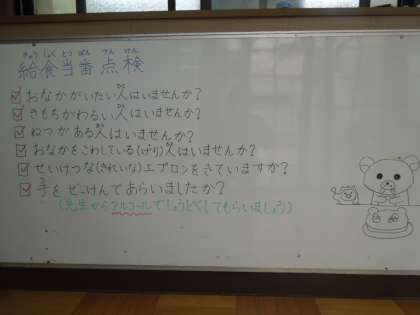 給食後に給食調理員さんに感想を言いました。