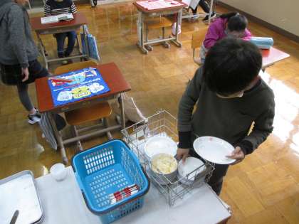 そして,給食では,6人が協力して当番をし,静かにおいしい給食をいただきました。