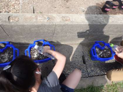 鉢に土を入れ種をまき水をやり肥料をまきました。これから毎朝,水やりをします。芽がでるのが楽しみです。