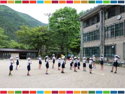 ★5,6年生の児童らが,準備運動,声掛けを積極的に行い,