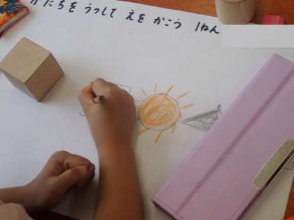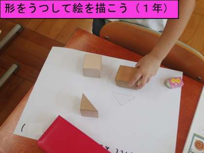 6月9日(火)算数科で立体図形の面を紙にうつし,絵を描きました。家や電車,かたつむりなどを楽しく描くことができました。活動を通して,立体図形の面の形を認識してくれたらと思います。明日,できた作品を持ち帰りますので,見ていただけれたらと思います。