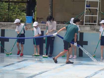 6月15日(火)全校児童でプール掃除をしました。1〜3年は,プールの外側,4〜6年はプールの中です。校長先生から,地域の方が大切にされているプールをみんなで掃除する大切さなどお話を聞きました。みんな,一生懸命協力して掃除をすることができました。