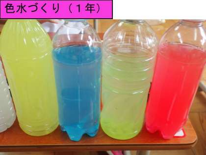 10月12日(火)1年生は図工「カラフルいろみず」の学習で「色水づくり」をしました。作った色水どうしをまぜたり,友だちの色水を見て作り方を聞いたりとても楽しく活動しました。色を混ぜて新しい色を作る楽しさを十分に味わるよう支援していきます。