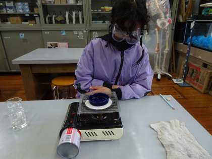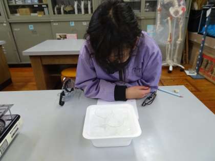 今週は,水溶液にとけている食塩やミョウバンを取り出すことができるのか,実験を通して調べました。熱して水の量を減らしたり,氷水で水溶液の温度を下げたりして,食塩やミョウバンが出てくる様子を興味深そうに観察していました。