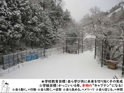 真っ白な運動場に飛び込みたい気持ちを抑えています。