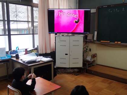 1年生は3学期,英語活動で「ちょうちょを紹介しよう」という学習をします。自分の作りたいちょうちょを作るため,自分の欲しい色を伝えその色を羽にはり,自分のちょうちょを紹介します。