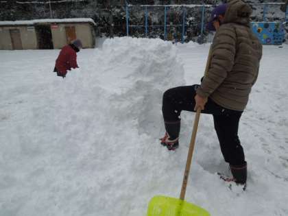 今日の鞍馬小学校の積雪は約40センチほど。