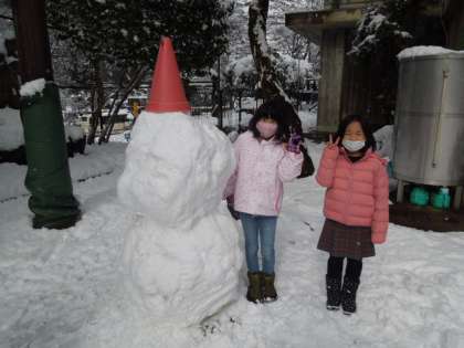 子どもたちの背と同じくらいの大きな雪だるまができましたよ。