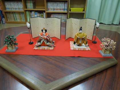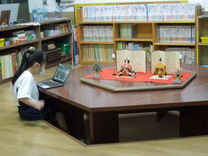 総合学習室に,ひな人形がかざられています。