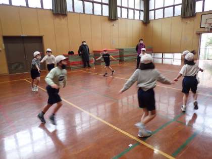 2月3日(木)1・2年生は体育でロシアのフォークダンス「タタロチカ」を踊りました。