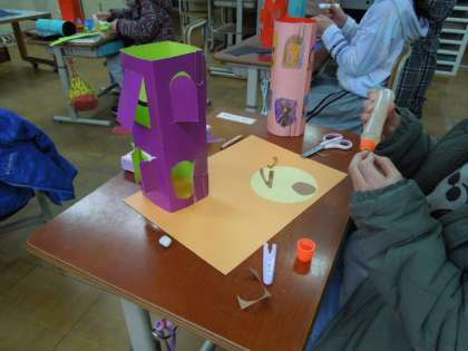 たてもののなかと,まどの位置をあわせながらつくっていきます。