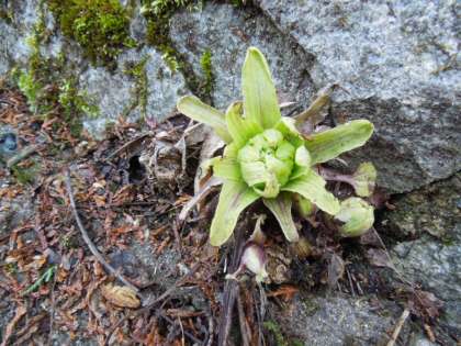 学校の階段スロープ横に,ふきのとうを発見。