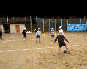 つぎは,攻撃と守備にチームを分けて試合をしました。