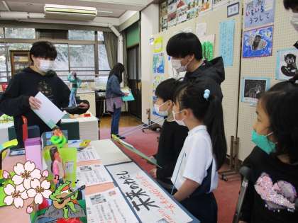 1年生と6年生が一緒に造形展(鑑賞)を行いました。