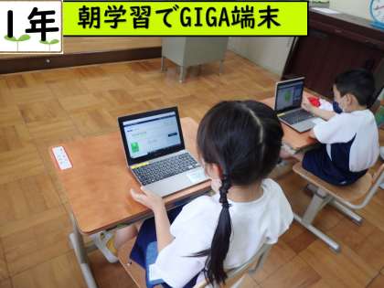 5月10日(火)1年生は,朝学習でGIGA端末を使いました。