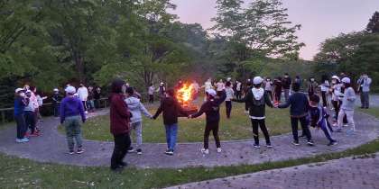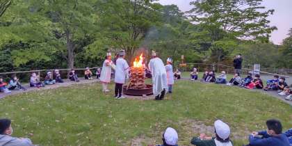ファイヤーを中心に,みんなの心が一つになってきました。