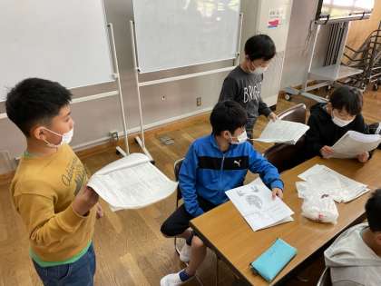山の家での活動が終わり,班ごとに振り返りをしています。