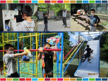 愛着がわいてきた子は,一緒にすべり台を滑るなどしていました。
