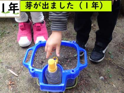 5月16日(月)先週植えたアサガオの芽が出ました。