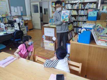 読書好きな1年生。たくさんの本に興味をもち,親しんでほしいと思います。