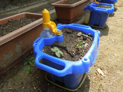 今日,5月19日,お日さまの光をたくさん浴びたおかげで,芽がでているのを発見しました。成長が楽しみですね。