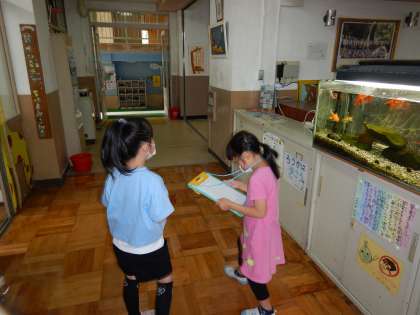 学校探検中は,お兄さん,お姉さんとして優しく1年生を案内したり,各教室の説明をしたりしていました。