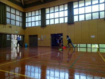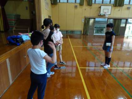 何をするのかをはみんなで話し合い,体育館でドッジボールと線おにをすることに決まり,みんなで楽しみました。