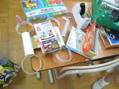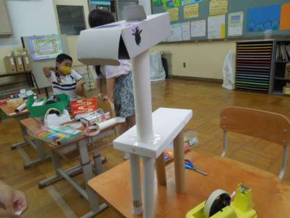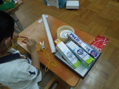 1年生の教室をのぞくと,みんな集中して,何かをつくっています。