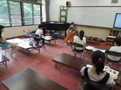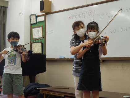 音楽の先生が実際にバイオリンとチェロを持ってきてくださいました。