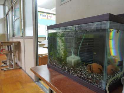 5年教室前に,水槽がおいてあります。