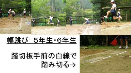 踏切板の前に引いてある白線を超えないように,注意して跳びます。