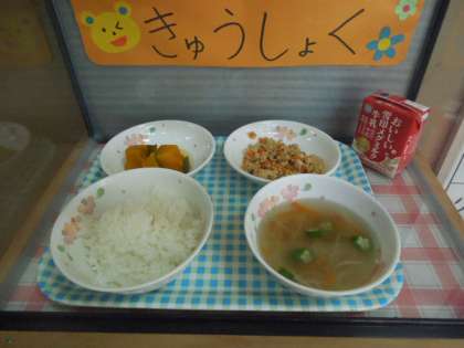 今日の給食は、和こんだてです。(6月から9月まで牛乳がつきます)