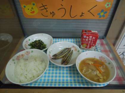 ニシン科の魚で、体長は約10cmです。体は美しい銀色で、中央には色あざやかな青色の帯もようがあるのが特ちょうです。その見た目から、鹿児島県南部の方言で、「帯(きび)」の「小魚(なご)」という名前がついたといわれています。