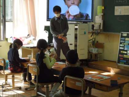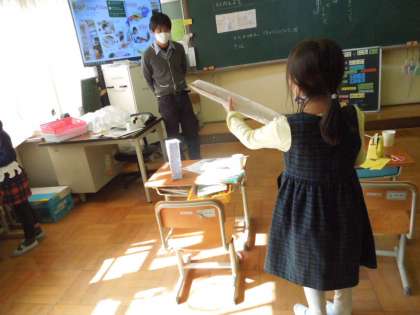 ストローをとおす穴をあけるのは、むずかしいなぁ。