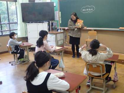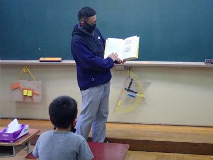 担任以外の教職員の読み聞かせに興味深々で聞く姿が見られました。