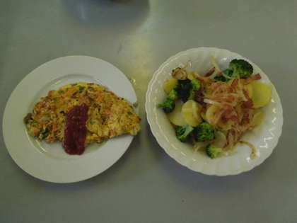 細かく刻んだ野菜が入ったオムレツは、栄養満点ですね。