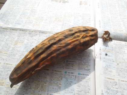春から種をまいて育てていた、ヘチマが大きくなり