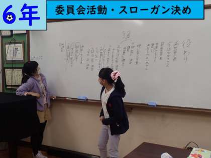 4月24日(月)委員会活動で4・5・6年生が集まり、活動のスローガンを考えました。