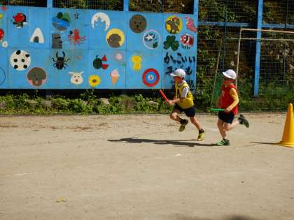 5・6年生チームは、バトンパスがとてもスムーズで、2回とも1分30秒の好記録で走ることができていました。