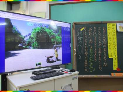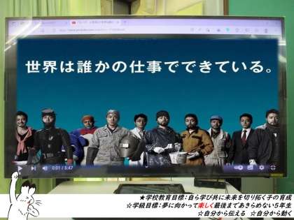 ★授業の最後には、「世界は誰かの仕事でできている」というテレビCMを見て、自分や自分の生活を支えてくれる人の存在について考えを深めました。