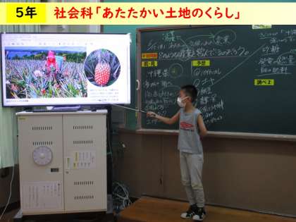 ★授業の最初「沖縄県は台風の通り道だから、台風に負けない作物だと思う。」等と考え、自分の問い(予想)をしっかり持って、調べ学習や分かったことの整理を行う姿がありました。